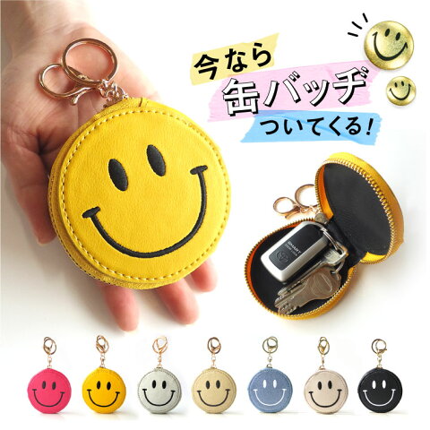 \今だけオマケ付/【スマイル コインケース】キラキラ スマイリー グッズ キーホルダー バッグチャーム ポーチ ニコちゃん 缶バッヂ ラメ レディース 鍵 小物入れ 小銭入れ Smile にこちゃん メール便 送料無料