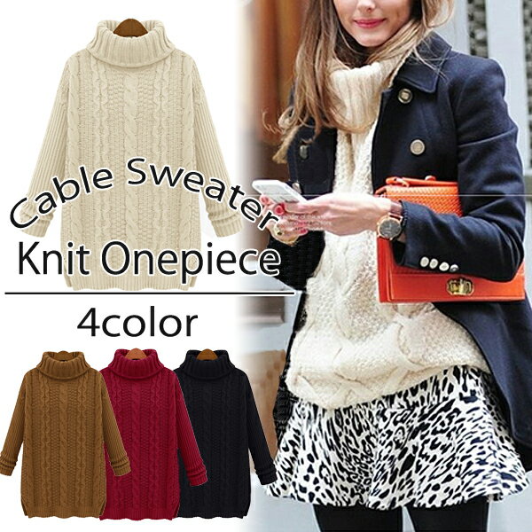 【期間限定価格】秋冬 ニットワンピース ハイネック タイト 通勤 オフィス きれいめ Aライン ランキング受賞 ケーブル編み 長袖 無地 ロングニットカーディガン コート (アパレル)